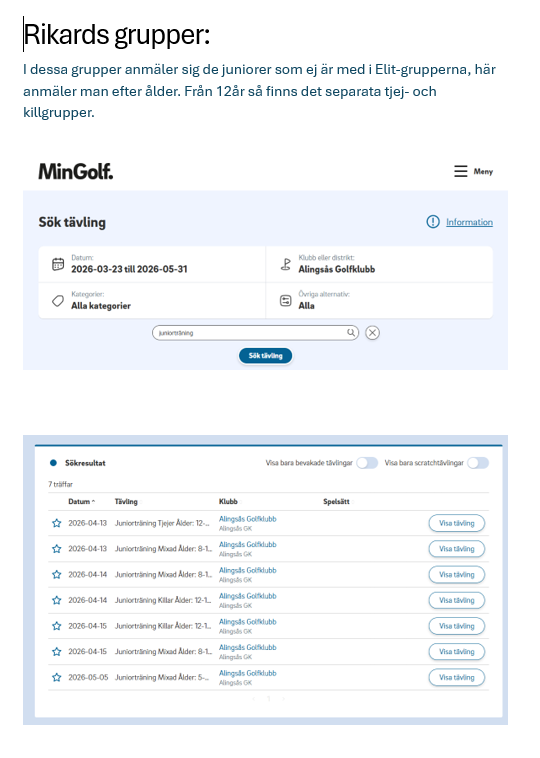 Välkommen till juniorträningen på Alingsås Golfklubb! Vi erbjuder lärorika träningsprogram för barn och ungdomar i åldrarna 5 till 21 år, oavsett erfarenhet. Under ledning av tränare Jonathan Grogan får unga golfare utveckla sina färdigheter och skapa vänskapsband i en positiv miljö.